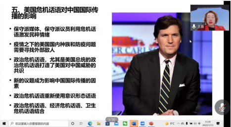 王磊表示VUCA时代中大小危机给我们带来各种挑战,批判了在国际传播话语环境中存在美国危机话语的模式下采用进攻式话语有意将危机对象模糊化和污名化,以及仇外、排他的“替罪羊”行为,并进一步剖析了美国危机话语对中国国际传播的影响。她强调中国国际传播的任务就是讲好中国故事,发出中国声音,并概括了中国国际传播与国家话语能力建设的主要目的:为世界提供体现中国智慧的话语,为世界提供中国治理模式的话语,为中国发展创造良好的国际话语环境。她最后指出,中国国际传播与国家话语能力建设的路径就是提高话语叙事能力,加强话语加工能力等。