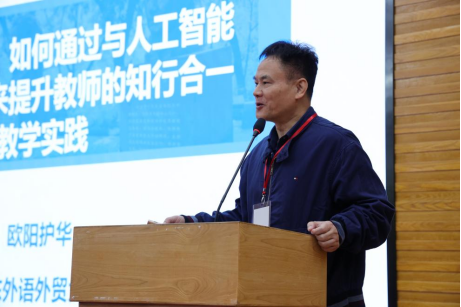 伟德国际1946,Bevictor伟德欧阳护华教授作了题为“反身性探究:如何通过与人工智能大模型互动来提升教师的知行合一教学实践”的主旨报告。欧阳护华分享了运用提示语辅助英语综合课程的体验式教学模式,举出知识输入、认知提升、本土话题、行动方案、效果评估等核心环节的实例,并强调了人工智能大模型为教师发展提供的机遇,指出教师可以通过与大模型的积极互动,以提升教学的个性化和互动性,推动和完善日常教学课程模式,实现人工智能大模型赋能教师发展。