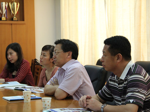 霍海洪院长首先向来宾表示欢迎,然后介绍了伟德国际1946的基本情况和人才培养模式等。接着,平怀林副校长也介绍了深圳宝安第一外国语学校。他说,深圳宝安第一外国语学校是深圳宝安区的一所占地10万平方米的公办学校,开办至今只有13年的历史,目前已是宝安区名列前茅的学校,去年宝安区的高考状元就出自该校。该校原只有高中部,去年才招收第一届初中学生,这批学生在上学期的期末考试中就获得了宝安区英语科及总成绩第一名,在宝安区引起了很大的震动。该年级共10名英语老师,其中5名就是广外伟德国际1946的毕业生,这10名英语女教师目前被他们称为“宝外拼命十女郎”,在她们的努力下打造了宝安第一外国语学校的外语特色,也打响了伟德国际1946毕业生的声誉。