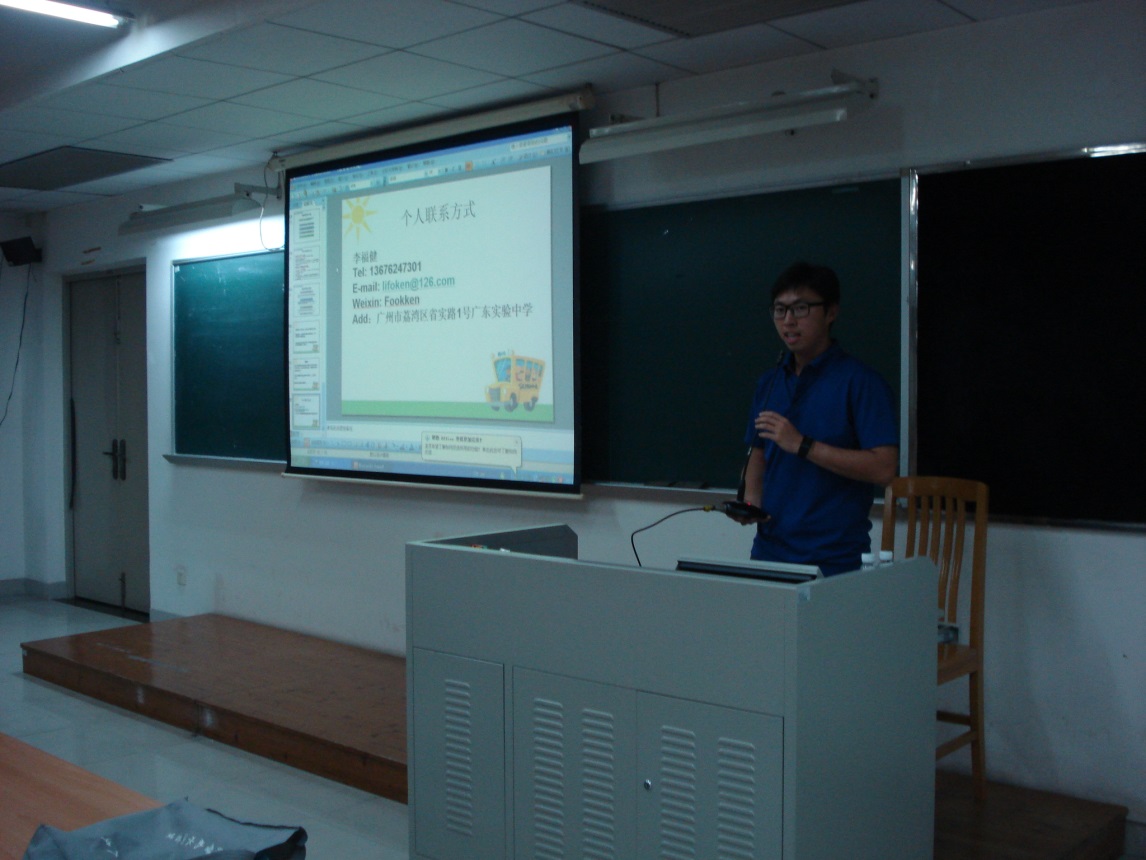 李福健首先作经验分享。作为广东实验中学高中部的一名英语教师,李老师表达了对母校的感谢后,针对教育实习中的教学工作实习做了经验交流。教学工作实习包括听课(观摩)、上课和批改作业与辅导。听课的环节作为教师要知道听课到底有多重要?该听那些课?如何听课?怎样听课或者要怎么去观摩一节课?这些教师要根据课型、教学目标的达成与否去决定,李老师同时也建议可以通过创设多样情景、调节学习活动难度、多样化评价方式和及时反馈调控来指导与调控课堂活动和调节课堂气氛提高学生参与度。上课的过程中,要自己定位好自己的教学类型,无论是一个演员型还是一个专家型,都要明确自己的教学目标。教师可以营造氛围,拉近学生距离,通过营造课堂亮点,将课堂教学推向高潮。另外教师更应该懂得随机应变,善于巧妙地在学生不知不觉中作出相应的变动才是真正的好老师。