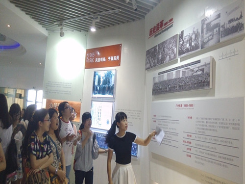 校史馆秉承“明德尚行、学贯中西”的校训,凝炼及宣传广外的精神和核心价值观,努力使之成为具有浓厚的广外校园文化特色的开放式馆所。毕业生参观了校史馆的三个大的部分:办学溯源与初期发展、改革开放时期的开拓与进取、公民教育与国际化人才培养。办学溯源与初期发展历历在目;改革开放时期的开拓与进取让每一个广外人为之自豪;公民教育与国际化人才培养更是使广外成为令人瞩目的焦点。一张张照片,一幅幅题词,一个个奖杯,无不显示出我校历史的厚重与积累,我校文化的担当与作为,我校师生的敬业与奉献。