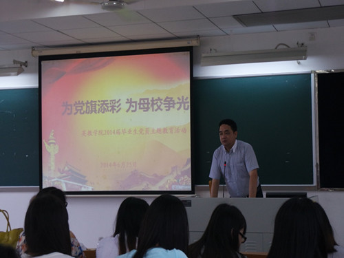 接着由林绍雄书记发表讲话。林书记提出,毕业生应牢记自己的响当当的共产党员身份,拥护党的纲领,遵守党的章程。他同时强调,毕业生党员要站好最后一班岗,充分发挥学生党员的先锋模范带头作用。最后他表示,望毕业生毕业后记得自己是广外的一员,是英教的一员,不忘母校,不忘同学。
