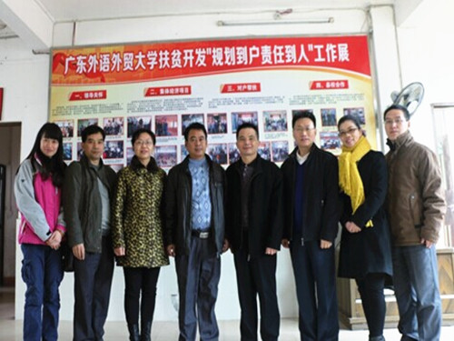 为贯彻落实我校扶贫开发“规划到户,责任到人”工作任务,伟德国际1946院长董金伟、党委书记林绍雄、党支部书记代表葛静萍和信息学院党委书记敖湘晖、副书记麦培年等一行六人,于1月9日赴阳山县黄坌村进行扶贫走访慰问。