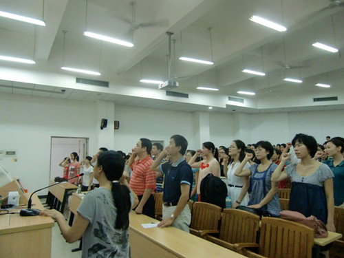 首先进行大会的第一项议程,在庄严的国歌声中,全体师生肃立,表情庄重,歌声洪亮,唱出了对祖国和党组织的拳拳挚爱之情。