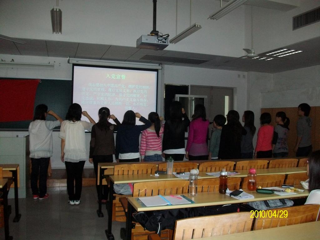 在会议中,13名同志逐一认真地宣读了入党申请书,并做了专题为“两会教育议案之我见”的报告。他们分别对今年“两会”中有关农村师资力量,大学生素质,代课老师,农民工子女入学难等教育方面的问题发表了自己独特的见解,并联系自身实际,表明了自己入党后将努力学习,坚决履行党员义务,为社会做出更大贡献的决心。随后,他们的入党联系人分别对他们给予了公正而详细的介绍和评价。之后进行支部有表决权的同志进行表决,经过表决, 13名同志均与全票通过。最后,支部书记刘嘉玲同志的带领下,他们在党旗下进行了庄重的入党宣誓,正式加入中国共产党。