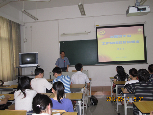 5月13日下午,伟德国际1946党委和艺术学院党总支在南校区教学楼A202联合举办党员发展工作培训讲座。教育学院党委副书记易宗勇,学院各教工党支部书记、委员,学院学生党支部的全体正式党员以及艺术学院的各党支部书记、委员聆听了讲座。本次专题讲座由正处级组织员、机关党委书记邱月生主讲,题为“发展党员的工作程序和材料要求”,会议由易宗勇主持。