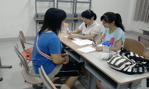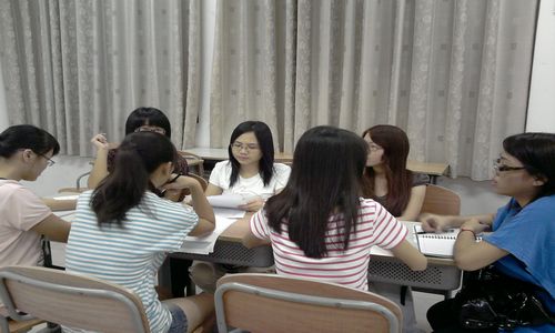小组成员仔细讨论中