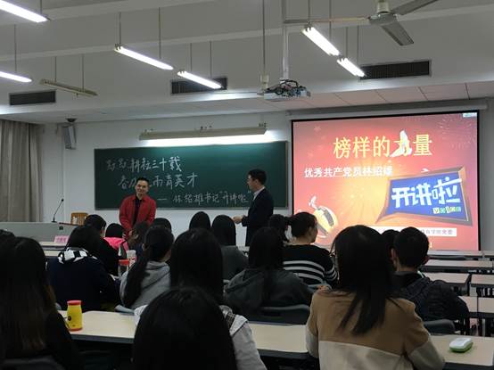 徐昶斌在总结中回顾了与林绍雄共事的经历和感受,高度称赞他崇高的政治思想觉悟以及高度的责任感和敬业精神,并鼓励在场全体党员同志与积极分子向林书记学习。最后,徐昶斌为同学们即将到来的的期末考试加油鼓气,号召在场全体党员同志与积极分子为同学们做出表率。