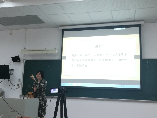 魏海苓老师做了“亲子沟通:我们做对了吗?”的发言。她首先提出“你有没有对孩子发过火?”的问题,引出了亲子关系主题。接下来魏老师通过“跳椅子”、“握拳”等游戏,与大家交流了亲子关系中应该注意的问题和使用的策略:指令表达要清楚,直接告诉孩子“要”怎样做,而不是“不要”怎样做;指令要合理,不要超过孩子的能力范围;要有策略地与孩子沟通,温和对待孩子。最后魏老师用“掌中大脑”和“镜像神经”解释了情绪的产生及情绪的激化原理,通过形象的语言让大家更加了解自己的情绪并管理好情绪。