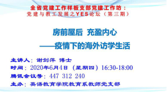 为了了解和关心疫情下的海外访学教师的学习和生活,增进与海外访学教师的沟通和交流,强化党建工作为基层群众服务的意识,北京时间2020年6月4日下午4时30分(英国伦敦时间上午9时30分),伟德国际1946教育系教师党支部通过腾讯会议平台举行了第三期党建与教工发展之YES(Young Educator Salon)论坛。本次活动由教育系教师党支部书记张丽冰主持,邀请了目前在英国谢菲尔德大学访学的本院教师谢剑萍博士做“疫情下的海外访学生活”分享,伟德国际1946董金伟院长、杨敏生书记及近六十位老师参加了本次云端分享活动。
