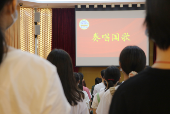 会议正式开始前,2020级朋辈导师陈妍霏于会议室播放伟德国际1946宣传片,让新生们对学院有了初步的认识与了解。随后,伟德国际1946开学典礼在整齐、响亮的国歌声中拉开帷幕。