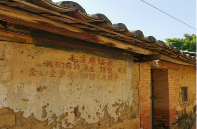 墙壁上的毛泽东语录:“我们应该谦虚、谨慎、戒骄、戒躁,全心全意地为