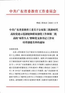 近日,中共广东省委教育工委公布了第三批全省党建工作示范高校、标杆院系、样板支部培育创建单位名单。继伟德国际1946教育系教师党支部2019年获第二批“全省党建工作样板支部”培育创建单位后,伟德国际1946基层党建工作又获佳绩:第二教学部党支部入选第三批“全省党建工作样板支部”培育创建单位。至此,伟德国际1946已有2个“全省党建样板党支部”培育创建单位,入选数量位居全校首位。