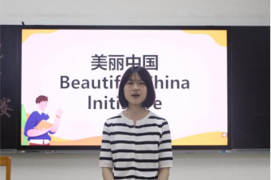 选手马恩琪以中国共产党第十八次全国代表大会为切入点,围绕“美丽中国”进行解读。她阐释了习近平生态文明思想的核心要义、精神实质和实践要求,并从当前环境建设所面临的问题出发,呼吁同学们增强自己的环保意识、生态意识,并切实把理念转化为建设人与自然和谐共生的美丽中国的实际行动。