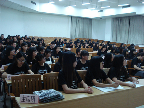 再接下来,主持人上台为我们仔细讲解了团学的组织框架及各部门职能,让新人们对团学及各部门的工作有更深的了解。而关于团学工作理念,团学副主席林敏瑜提出了五点要求:服务同学、处事严谨、做事高效、主动思考以及不断创新。这番话使大家对以“服务同学”为宗旨有更深的认识,而接下来的团学风采展示视频则让大家对英教团学举办的活动有了更直观的了解。