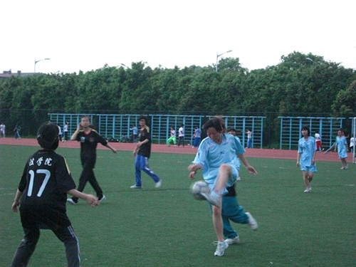 下半场易边再战,双方互有攻防,战局激烈,现场气氛一热再热。在激烈的拼抢中,法学院又进一球。但随后,我方在男足队长钟迪的现场指挥下,逐渐掌握了场上的节奏,并调整了战术策略,善用智慧和技巧,着重防守,牢牢压制了对方的进攻。前场由7号球员周炫和20号球员黄秀珍相互接应,对拼敌队,扑截快球,突围底线;后场由剩下的球员展开严密的防守,减轻敌方对球门造成的威胁。在比赛中,我方防守后腰25号吴婉冰表现尤为出色,以大脚开球以及精准的捣毁数次破坏对方进攻,保我队后方无虞。法学院占据体力优势,场上队员一换再换;我方队员则咬紧牙关,一战再战,成功打破了对方妄图用体力差距击溃我方防线的如意算盘。