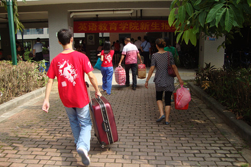 9日上午8时,2012级新生陆续报到,正式投入英教这个幸福的大家庭。伟德国际1946党委书记林绍雄、党委副书记何伟儒、辅导员迟殿凤老师、辅导员姜尖老师、团学干部以及学院迎新志愿者们早早来到生活区8栋楼下英教大本营布置迎新工作,为2012级新生们的到来做好充分的准备。