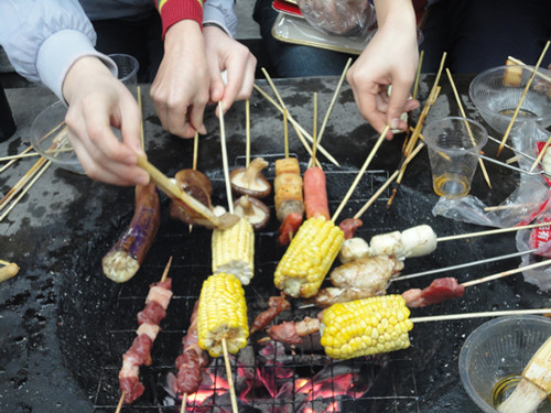 烧烤所用的食材、用具全部由团学自主采买。早上8点半左右,团学大军带着大包小包,浩浩荡荡地向金星农庄进发。为了更好地增进团学成员的相互了解,主席团采用“报数”的方法将各成员打散分组,每一组使用同一个灶台。繁忙的准备工作中,各部门分工合作,小干事们尽力尽力,部长们也亲自出手洗菜、串菜,仿佛这里站着的不是来自不同年级、不同班级的同学,而是一起为午饭忙活的兄弟姐妹们。在烧烤活动中,现场气氛热闹,每一个灶台旁围坐的都像一大家子,大家一起生火、加炭、烧烤、打闹,尽情享受团学大家庭相聚一刻的欢乐。