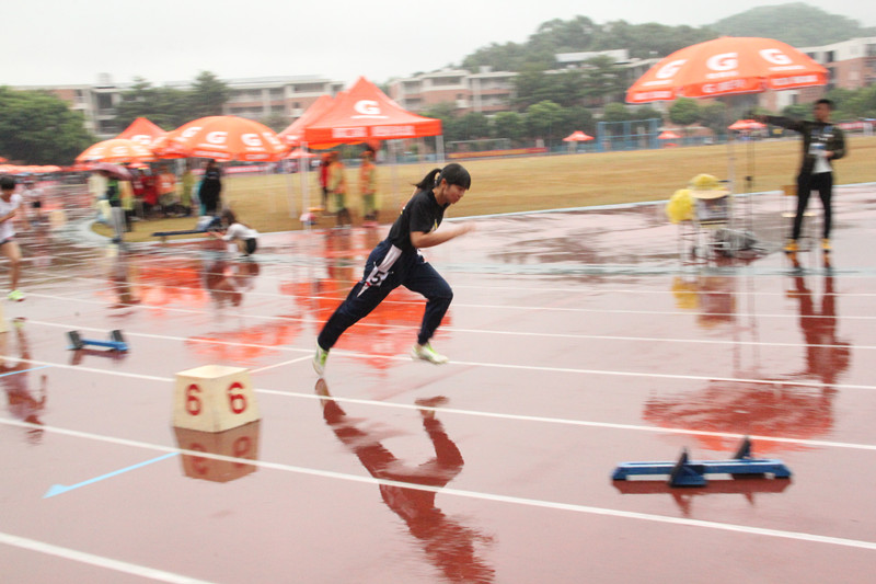 校运会上,虽然天气不佳,略有小雨,但却丝毫没有熄灭运动员们在运动场上一展风采的热情,代表出赛的英教学子更是展现出了不屈不挠勇往向前的运动精神。