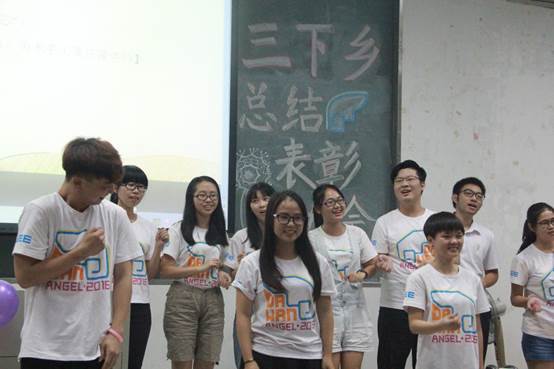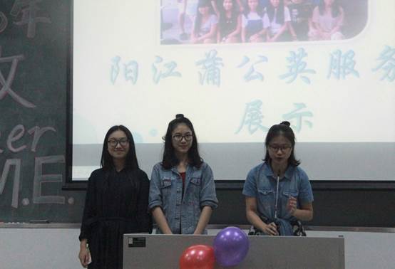 在队伍展示的环节中,先进行展示的是阳江蒲公英服务队。队长们首先总结了这10天的经历,表达了对虽然辛苦但仍然来看望队员们的领导的感谢之情。接着,队长仔细向大家介绍了义教的内容以及队员生活,并且进行了经验总结。本次阳江蒲公英服务队特别为当地高三学生开设了辅导班,对4个高三学生进行理科和英语弱势学科的针对性辅导。在这10天中,队员们不仅见证了当地孩子们的成长,也见证了自己的成长,锻炼了自己的应变能力,收获了深厚的友谊。三下乡结束后,队员们仍与当地学生保持着密切的联系。最后,阳江蒲公英服务队以一首温暖的《you are my sunshine》结束了自己的展示。