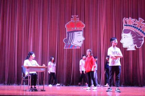 1703班的《Snow Red》巧妙地将小红帽和白雪公主融入到同一个故事中,让人耳目一新。善良的白雪公主又被巫婆陷害,幸好有小红帽搭救得以和父王愉快地生活,小红帽和William这对恋人历经曲折但最终也能幸福相伴。这个戏剧告诉我们人生总是充满着一次又一次的反转,惊喜也许就在下一个转角。