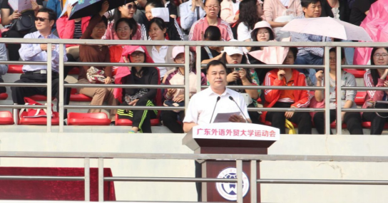 首先,由我校党委副书记、纪委书记刁振强致开幕辞。刁振强在致辞中表示,一年一度的运动会,是全校师生展示意志品质和活力风采的重要舞台,也是广外人挑战自我、超越自我、完善自我、追求卓越的校园文化盛会。同时,他也衷心希望,赛场上的运动员们能够全力以赴,尽情展示广外学子的活力,助力青春、健康、卓越的校园文化建设。