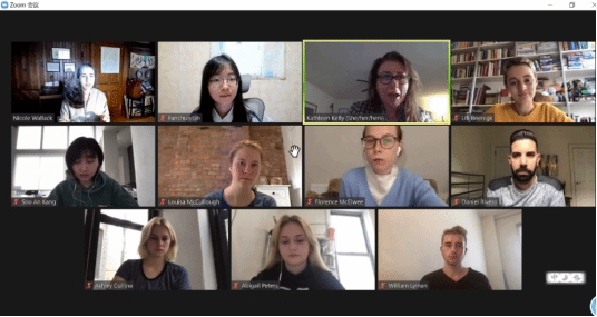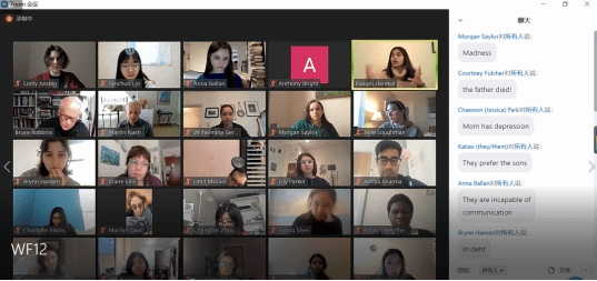 交流期间是通过Zoom进行线上上课的,每次上课期间教授和同学们都会打开自己的视频,画面上有来自世界各地的朋友,也有不同肤色与种族的朋友。课堂上老师留给学生回答问题的机会有很多,同学们也特别积极地发表自己的看法。积极的课堂参与会记录一部分的平时分,但是同学们的表现让我感受到的不是他们仅仅是为了争取学分,而是压抑不住脑海的各种奇思妙想才踊跃地举手。
