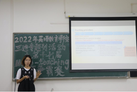 为提高学生英语应用能力和教学能力,促进学生更好地将课堂知识与教学实践相结合,在人才培养过程中融入习近平新时代中国特色社会主义思想,2022年伟德国际1946“三进”专题系列活动之第十七届Micro-teaching师王争霸赛初赛于2022年10月27日晚19:00在南校区教学楼G403、G404、G405举行。