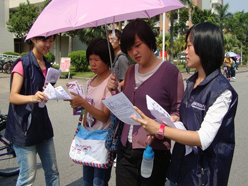 校道摆摊宣传现场闪动着学术部工作人员辛勤派发传单的背影,许多同学都踊跃前来咨询。工作人员耐心的讲解,使同学们脸上露出会心的笑容。炙热的艳阳阻挡不了工作人员忙碌的脚步,也阻挡不了同学们对MT大赛的向往。