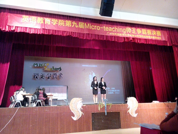第九届Micro-teaching师王争霸赛总决赛于2014年12月11日下午2:00在广外学生活动中心二楼举办。经过了初赛和复赛的层层角逐,最终广外的五组选手与华师的五组选手进入总决赛,相遇于决赛的舞台,一决高下。