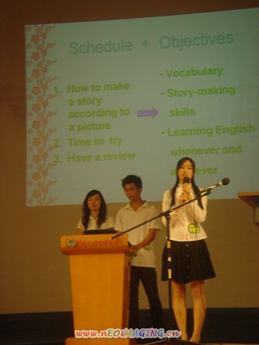 Group CAI was the first group to show their teaching skills. They tried their best, using games, such as Word Matching, Acting Time to draw the students’ attention. Not only the students, but also the audiences were entertained by their teaching.