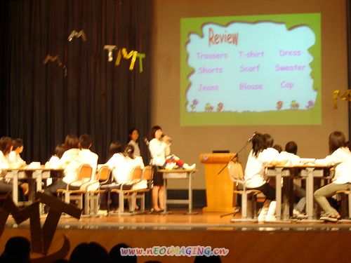 Then Group Cudy showed their faces on the stage. Their teaching contents include Type of Clothes, Match Clothes to body, DV Time, Dialogue to cut price and so on. They put the educational theories they had learnt, such as the TPR theory, into practice. They were so professional that everyone seemed to be involved in it.