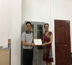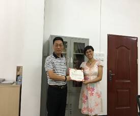 十七中唐绮红副校长接着详细地讲述了有关实习食宿问题,表达对实习生的期待,并介绍了五位指导老师:高三科组许靖华科长,李莉老师,谭桂芳老师;初二科组毛敏老师和何燕老师。然后由十七中肖主任同时阐明了校方的实习要求和相关作息制度。伟德国际1946带队老师谢剑萍也表达了自己对实习学生的殷切希望,希望学生珍惜机会,向优秀的指导老师学习。最后,董金伟院长为在场几位指导老师颁发了实习聘用证书,并合影留念。
