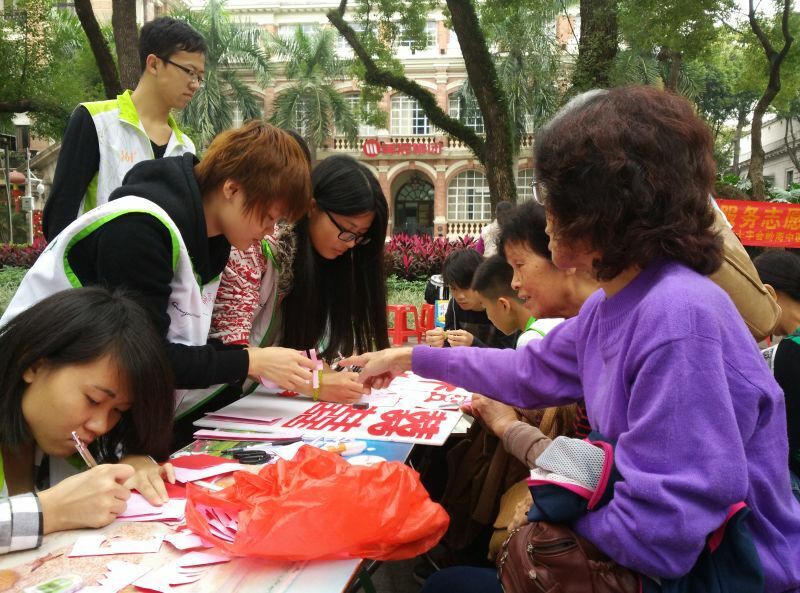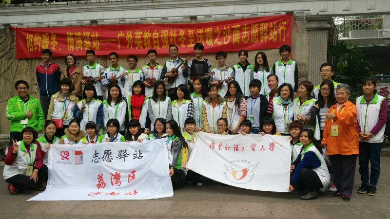2015年12月12日上午,伟德国际1946,Bevictor伟德英教自强社全体干部干事和社员共同前往荔湾区沙面公园进行“冬至送温暖系列活动”之沙面驿站行志愿者服务活动。