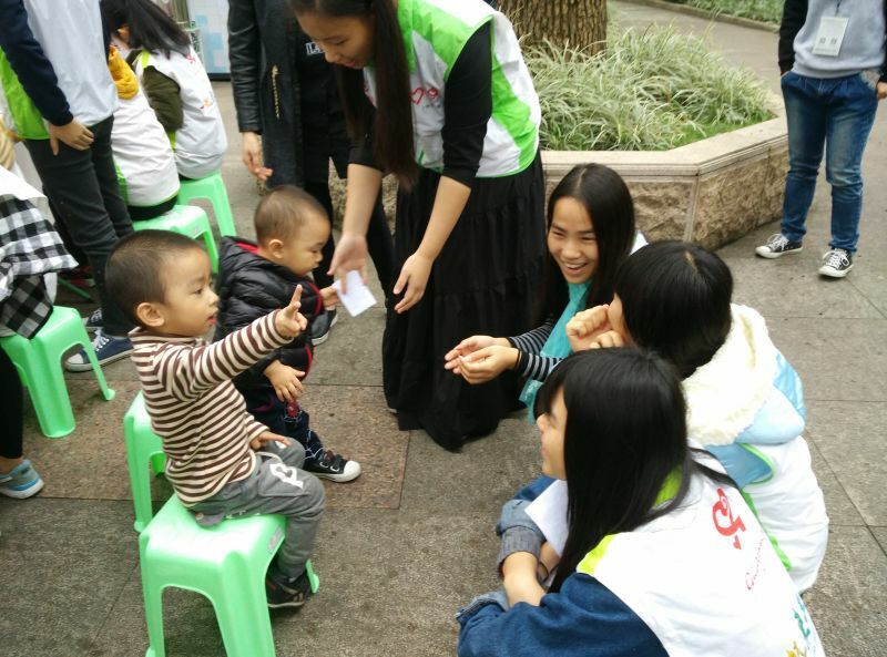 在志愿者姐姐的教导下,小朋友哼出轻松的英文儿歌,稚嫩的歌声甜甜的,暖到周围市民的心坎去。