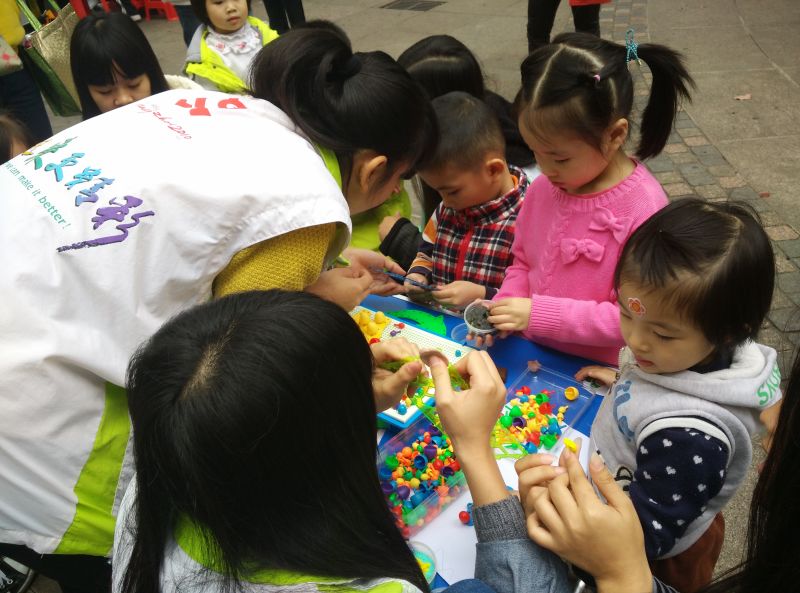 十一点半,活动进行到尾声,仍有市民过来向志愿者学习剪纸折纸等内容。活动结束时志愿者们仍旧热情高涨,不舍结束本次活动,纷纷与市民约定下次的志愿之行。