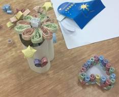 (同学们正认真地制作作品)