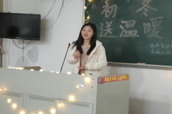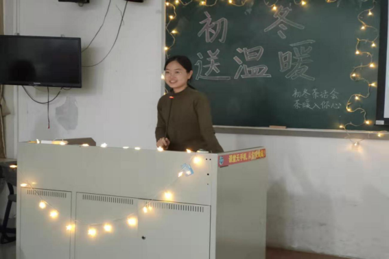 2019年12月8日,伟德国际1946,Bevictor伟德,伟德官网,伟德网页版自强社“初冬送温暖”活动于南教学楼G211圆满举办。本次活动的主题是“初冬茶话会,茶暖入你心”。目的是让社员感受到自强社的关怀,在初冬为社员送上一份温暖,同时进一步增强社员们之间的感情,增进彼此之间的了解,让社员们更好地融入自强社这个大家庭,提高自强社的整体凝聚力。