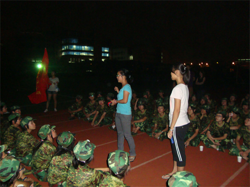9月10日晚7点20分,英教团委学生会部分干部前往南校区假草场慰问正在进行军训的新生,受到了他们的热烈欢迎。