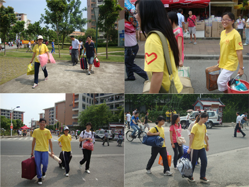 在本次迎新工作中,伟德国际1946共设5处新生接待点,分散于学校各个入口。每一处接待点都有志愿者手持标牌指引新生,同时为新生解答各种问题;更有搬运组的同学不辞劳苦,顶着炎炎烈日帮助新生搬运行李,贴心地带领他们前往大本营进行报到。