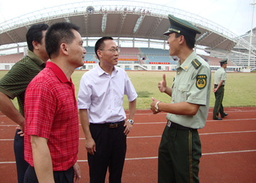 党委副书记何伟儒首先代表学院对这次姗姗来迟的军训学院慰问向教官和新生们表达了深深的歉意,并希望新生们能体谅开学之初学院工作的繁重,认真军训,要刻苦耐劳,以全新的面貌面对以后的学业。