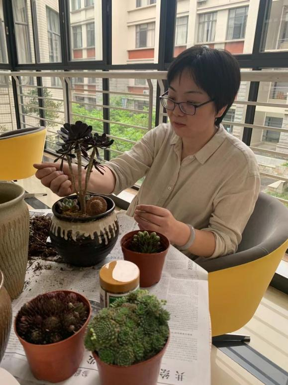 更值得一提的是,学院结合学院女教师爱种花、爱赏花的实际情况,学院工会委员和管理干部亲自动手,边探索边实践,开展了一系列灵活运用空间的微改造行动,在多个风雨走廊或种植或摆放绿植、多肉、鲜花,并添置款式大方的休闲接待沙发,供师生交流、休闲、办公等。每隔一段时间变幻的鲜花、植物让学院绿意盎然,让人心旷神怡。有了好的开始,积极带动了更多的教职工参与进来,陶玉梅、孙红、吴岩等老师带来了自己种植的植物、鲜花、装饰品,在一滴一地改变着、美化着学院。目前,学院拥有大小盆栽将近百余盆,不同花期的植物竞相绽放花朵,美不胜收。该处已经成为南校区院系楼小有名气的网红打卡点,多个学院的采访录制活动就在这里举行。