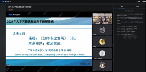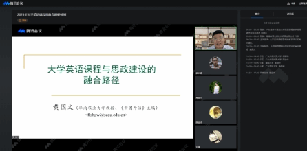 为扎实推进外语课程思政建设,提升外语教师课程思政教学能力,提高外语教师课程思政比赛参赛水平,近日, 2021年大学英语课程思政专题研修班在线举办。此次研修班由广东省本科高校大学英语课程教学指导委员会主办,伟德国际1946,Bevictor伟德,伟德官网,伟德网页版承办,高等教育出版社协办。此次研修班也是伟德国际1946,Bevictor伟德,伟德官网,伟德网页版院庆20周年系列活动之一,聚焦外语学科与思政建设融合、外语课程中的思政元素挖掘、外语课程思政育人目标实现及评价机制等核心议题。据后台统计数据显示,本次会议共吸引了来自全国各地高校的1100余名教师在线观看。