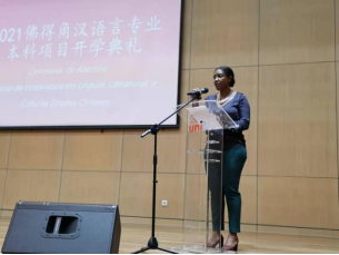 杜小丛大使热情洋溢的讲话,充分肯定汉语言专业本科项目的成功开办是中佛人文交流进程中的又一特殊美好时刻。从2015年佛得角大学孔子学院挂牌,杜小丛大使亲眼见证了佛得角汉语教育的快速发展。他说,汉语言专业的开办为佛得角自主培养汉语教师提供了坚实的平台,必将长远惠及中佛友好事业。他寄语首届新生珍惜学习机会,全力以赴学好专业知识,通过掌握中文拓展认识大千世界的视野,为中佛友好事业作出贡献。佛得角国务秘书尤丽迪丝指出汉语学习对佛得角的重要性,并对中国政府与中国高校一直以来给佛得角的学子们提供的机会表示感谢。她相信佛得角大学汉语言专业的开设,必将对于佛得角的学子们增强全球竞争力发挥重要作用。