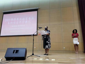 教师代表阮祚崟以他教授的两个学生汉语学习经历为例,勉励汉语言专业的新生们:汉语言专业是一个全新的专业,要敢于抓住机会,追逐自己的梦想,实现人生抱负。“中国在我的心里”,新生代表龙勇生表达了所有汉语言专业新生的感受。作为最早的孔学院学员对汉语的热爱让他继续报读汉语言专业,提高自己,更好的传播中国语言文化。