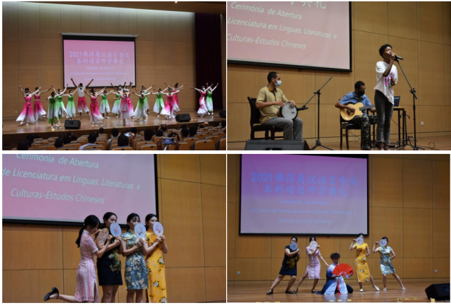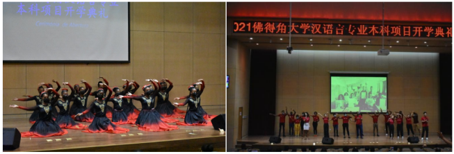 典礼在开场舞《青鸟》中缓缓拉开帷幕。佛中友协舞者生动演绎传递佳音使者的青鸟破壳、振翅、高飞,表达对汉语言专业首届学生的美好祝福和期许。音乐学院的演奏让观众沉醉于浪漫嗓音与动人旋律之中。孔子学院教师的舞蹈《南屏晚钟》尽显东方风韵,《时候》折扇翻飞、玉袖生风,流水行云。