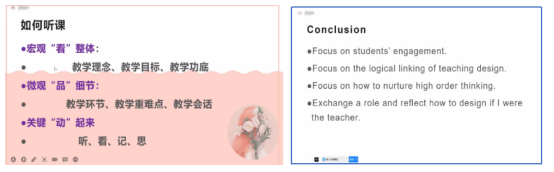 叶翠玲结合学生评价分析新教师的特点,指出新教师具有负责、耐心以及有亲和力的优点,也存在教学模式单一、课堂管理能力不足以及教学立场不坚定等问题。基于以上情况,她以高中英语教学单元和课文为例,就如何设计和开展一堂有效的课堂,提出“应关注学生的参与度,关注教学设计的逻辑性,关注如何从低阶思维练习逐步提升至高阶思维拓展”等一系列宝贵观点。