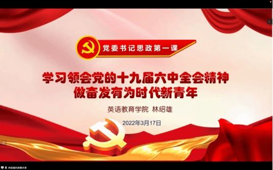为引导帮助学生深入学习领会习近平新时代中国特色社会主义思想和党的十九届六中全会精神,3月17日晚,伟德国际1946通过腾讯会议平台举办党委书记思政第一课。学院党委书记林绍雄以“学习领会党的十九届六中全会精神 做奋发有为时代新青年”为主题进行宣讲,学院2021级全体本科生和预科班学生参与了本次课程的学习。