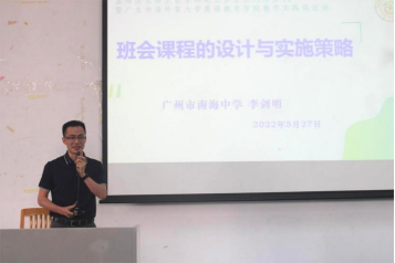 在“班会课程设计与实施策略”讲座中,广州南海中学的李剑明老师以“寻找一片班主任的紫色天空”引入话题,结合班级故事与自身经历讲解了班会文化与班会课、班会课程开发和琢玉课程的开发策略与设计思路等内容,给同学们提出了许多具有建设性的意见和建议。面对大家提出的问题,李剑明表示面对外界的质疑与不信任时,不要急着争论,而是用实行来回应并建立起信任感。