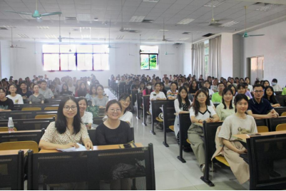 吴岩作开场致辞。她向同学们介绍了讲座的主讲人和主要内容,鼓励英教学子踏实学习,在今天的讲座中学到更多有用知识,以讲座主讲人为榜样,做一名合格、有温度的教师。